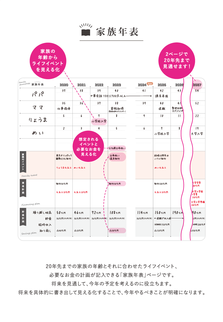 家族スケジュール、家族年表、なりたい自分リスト、