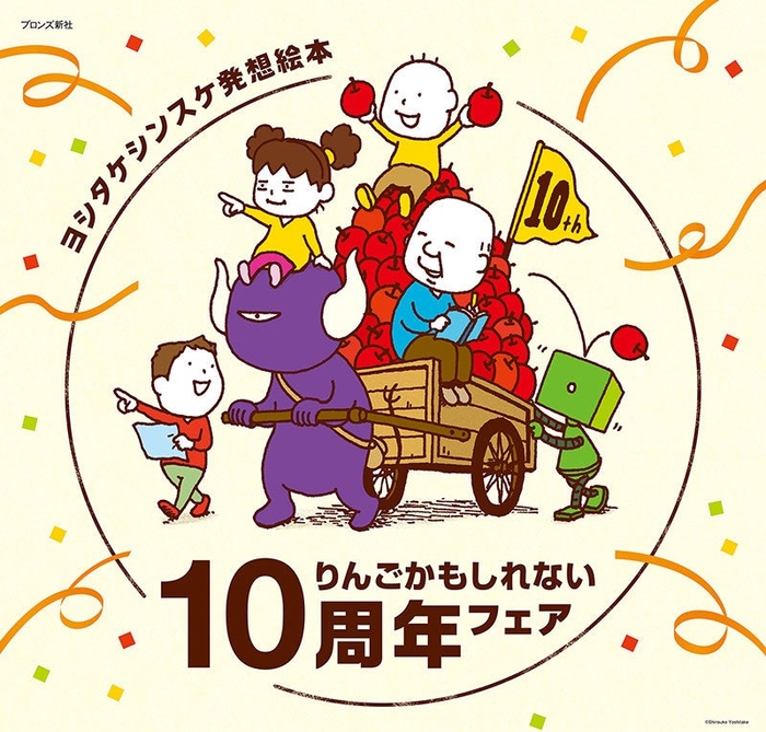 株式会社ブロンズ新社(所在地:東京都渋谷区、代表取締役:若月 眞知子)は、ヨシタケシンスケさんの絵本作家デビュー作『りんごかもしれない』が刊行10周年を迎えたことを記念し、オリジナルグッズが当たる読者プレゼントキャンペーンを、9月20日(水)より開催中です。
