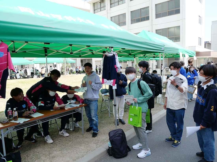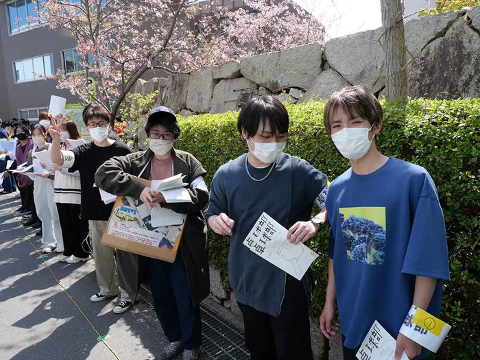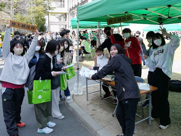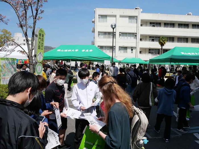 キャンパスににぎわい戻る! 4月4日は岡山理科大学の新入学生オリエンテーション。岡山キャンパスでは芝生広場を中心にサークル勧誘の列ができ、あちこちで新入学生たちのフレッシュな笑顔が弾けました。この日の模様を写真グラフで紹介します。