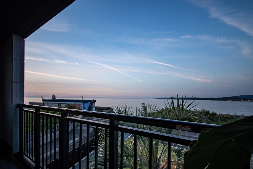 宿の目の前にはオーシャンビューが広がり、テラスからその絶景を一望できます。夜には闇夜に輝く無数の星たちがご覧いただけます。