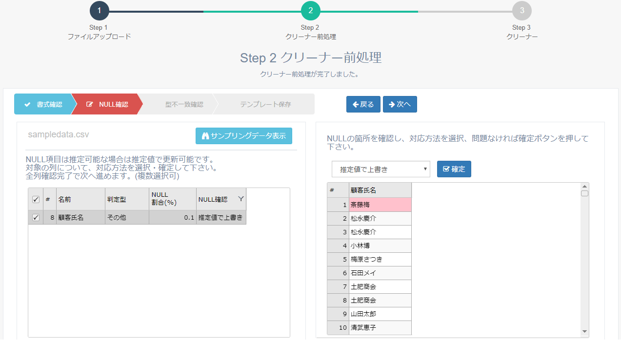 ◇ 空のデータを検出し、入力漏れを確認できます。アプリケーションが、空のデータに本来入力されるべき値を推定し、自動補完することも可能です。
