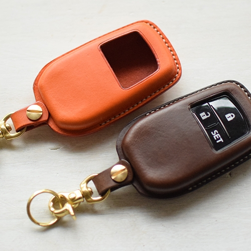 イタリアの革ブッテーロを使い、「しぼり」の技術で形を形成して作られたスマートキーケースになります。ジャストサイズなので、使いやすく他のキーと一緒に持ち歩くことも出来ます。