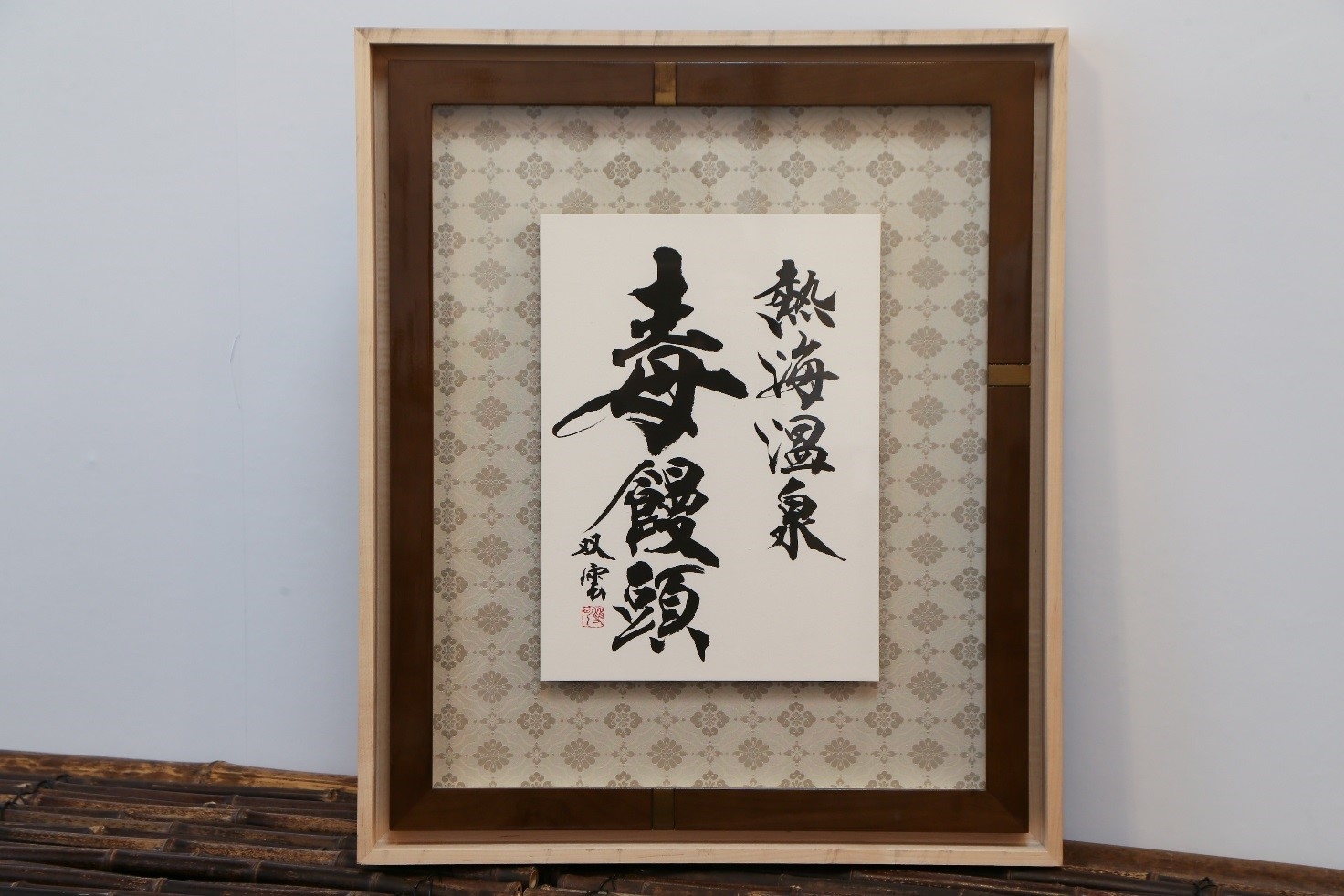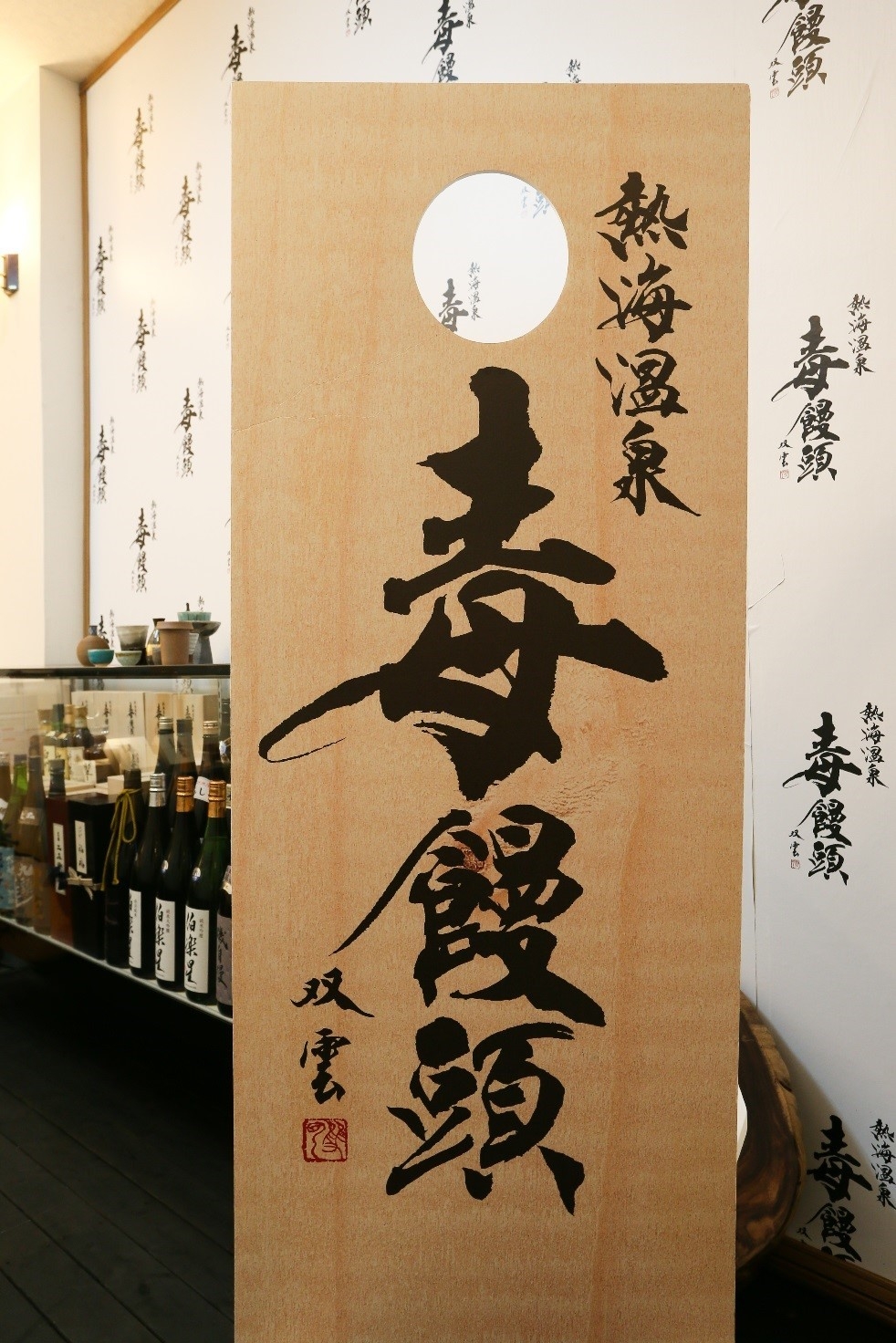 国産品を日本らしく販売することをモットーに、レトロな情趣を醸し出す熱海温泉の商店街に店舗を構えています。店内は無垢材を組み立てて塗装した手作りの黒い床、そして武田双雲の書を印字した両壁面、地元の陶芸品や国産で稀少な日本酒・焼酎・ウィスキーが飾られて和空間を演出しています。営業日は超不定休、営業時間は作品がなくなり次第閉店としています。開店日から儲けを度外視した営業スタイルです。