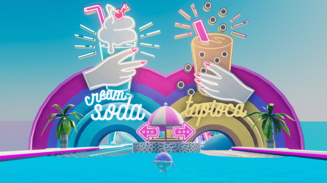 素早くダイナミックにシーソーを動かして障害物を避けながら、途中タピオカコースかクリームソーダコースを選択し、ガールフレンドの待つゴールを目指します。