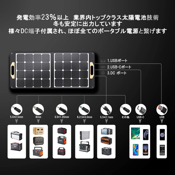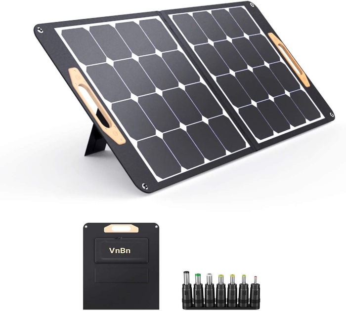 VnBn ソーラーパネル 100W ETFE ソーラーチャージャー 折りたたみ DCポータブル電源充電器 DC/USB-C/USB-A 出力端子 仕様 (100W 18V 5.5A) 高変換効率 超薄型 二折 軽量 コンパクト 単結晶 IPX4防水 スマホ タブレット パソコン 充電可能 アウトドア 防災 停電 キャンプ 非常用 取扱書兼保証書付