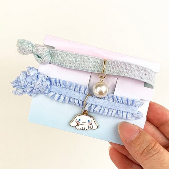 もう1本はフリルがあしらわれたゴムにシナモロールのチャームつき♡どちらもキュートすよね♪