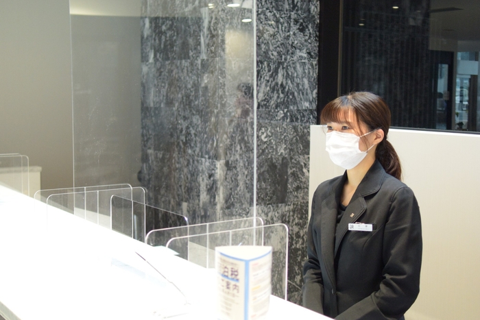 ●フロントカウンター内に、飛沫防止アクリルパネルを設置しております。