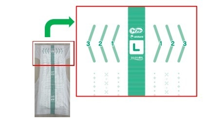 ~ウエストテープの貼り付け位置が分かりやすいマークを採用し 簡単に正しく装着できる~