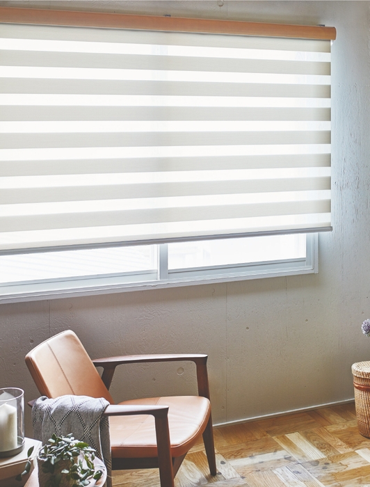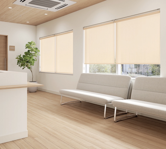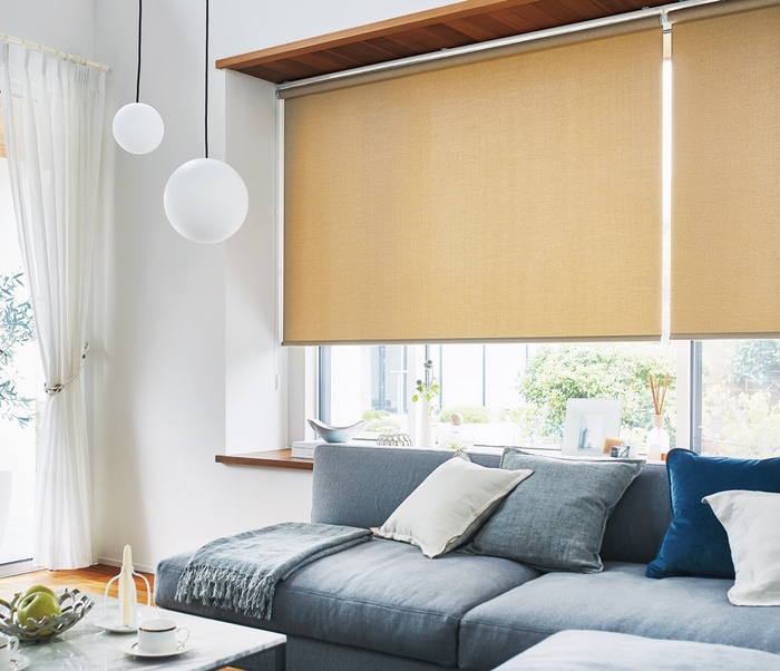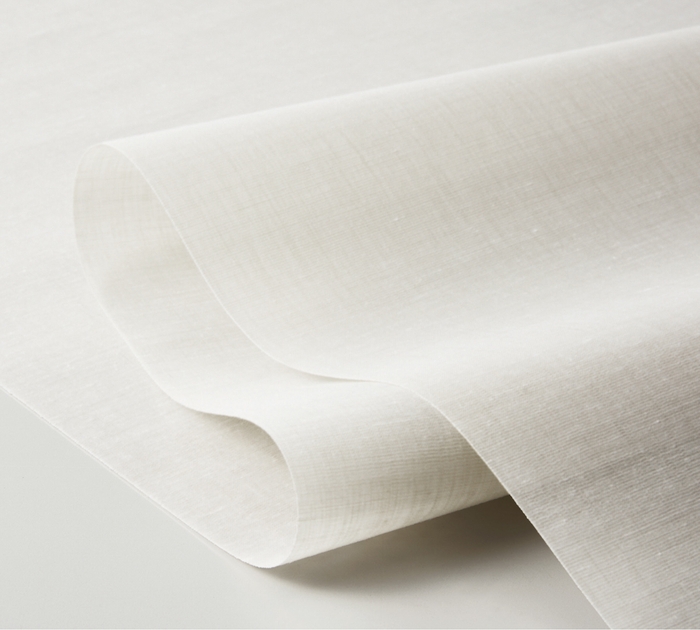やや光沢のあるヴィンテージリネンのような表情のあるノン樹脂加工の柔らかいスクリーンです。透過性を抑えた織り方で、全色の透過度ランクが「プライベート」。ユーザーのプライバシーを保ちながら程よく光を採りこみます。