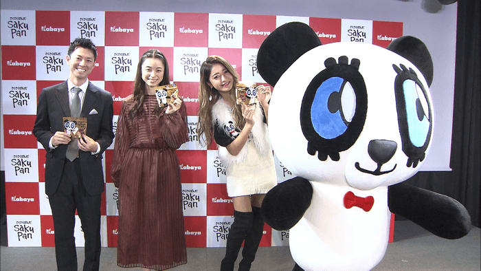 “みちょぱ”こと池田美優さんも恋のお願い!? 新さくさくぱんだ Sakupan PR発表会 池田美優さんがSakupanと一緒にパンダのコスプレで登場