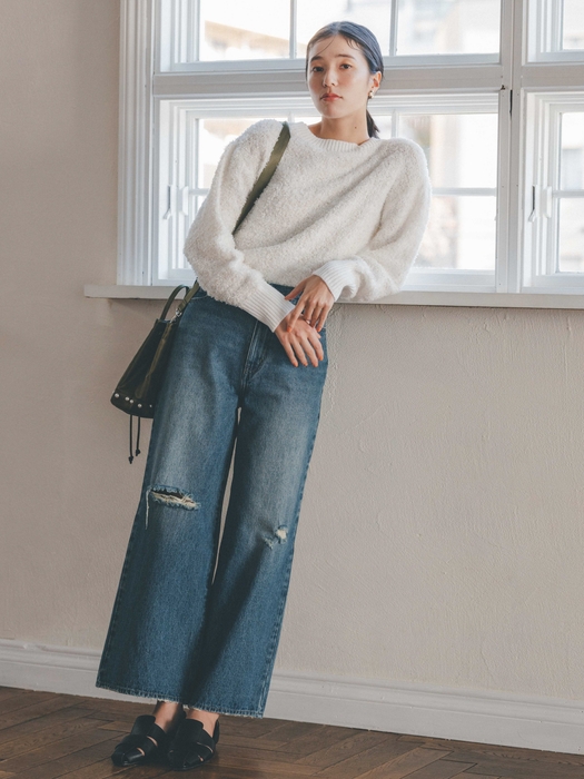 ●デザイン:ラフになりすぎないセミワイドシルエット。程よいダメージ加工があるタイプとダメージ無しの2タイプ。