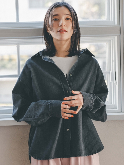 ●デザイン:ドロップショルダーのデニムシャツは、さらっと1枚で着たり、軽い羽織として使ったりとシーズンレスでマルチに活躍する1枚。