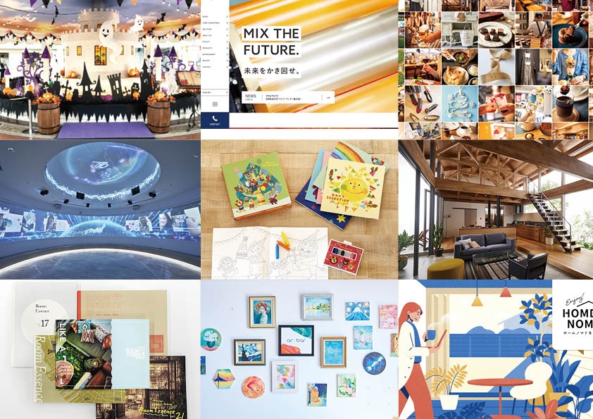 マーケティング戦略策定支援、WEBサイト構築/運用、SNSコンテンツ運用支援、カタログ企画制作、展示会・オフィス・ショールーム等の空間設計施工、Artbar Osaka(※)を展開。