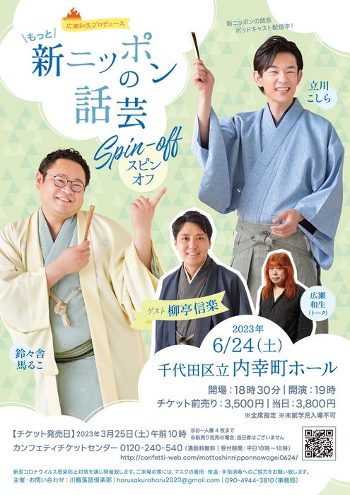 『もっと!新ニッポンの話芸 スピンオフ』が2023年6月24日(土)に千代田区立内幸町ホール(東京都千代田区内幸町1丁目5-1)にて開催されます。