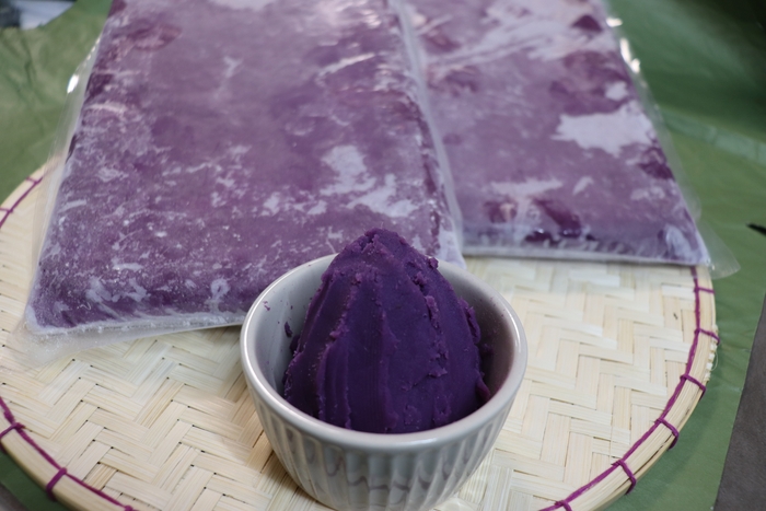 心を込めて栽培した紫芋をもっと多くの方に楽しんでもらいたくて、忙しい飲食店の方がお菓子作りに利用しやすいペースト状にしました