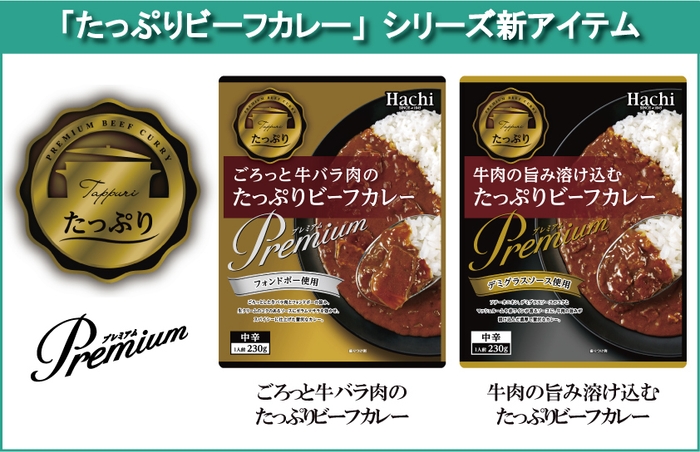 『たっぷりビーフカレー』シリーズは、通常のレトルトカレーの量ではちょっと物足りない方に向けたレトルトカレーです。量だけではなく具材やソースにさらにこだわり、より一層の満足感を与えられるような商品を提案すべく開発いたしました。また、プレミアムな商品を追加することでシリーズの強化を図ります。