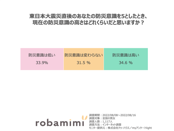 株式会社ドゥ・ハウス(本社:東京都千代田区、代表取締役 社長:小笠原 亨)は、当社が運営する日本最大級のお試しサイト「モラタメ.net」の姉妹サイトであるニュースサイト『ロバ耳』にて、9月1日防災の日にちなみ「防災に関するアンケート」を実施しました。