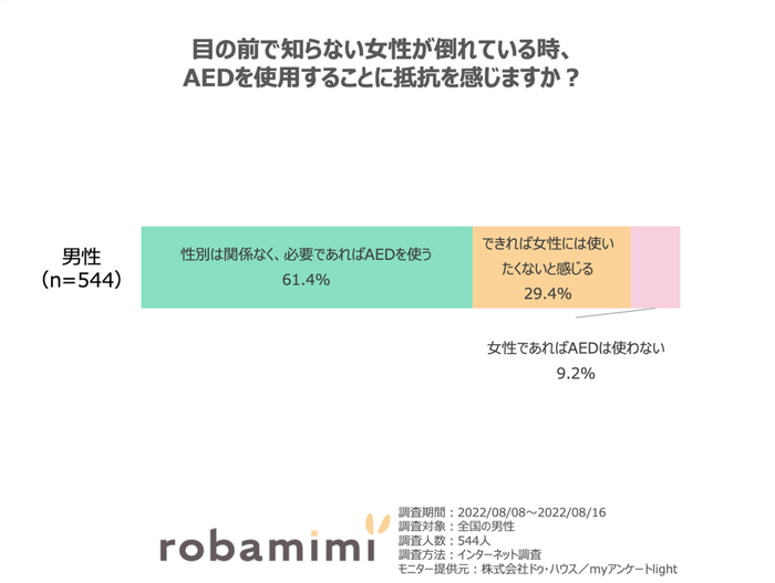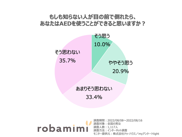 「AEDはみんなが知っているけど、使い方はわからない」、「女性にAEDの使用をためらう男性は4割」など、気になる調査結果を公開 URL: https://www.moratame.net/wp/robamimi/