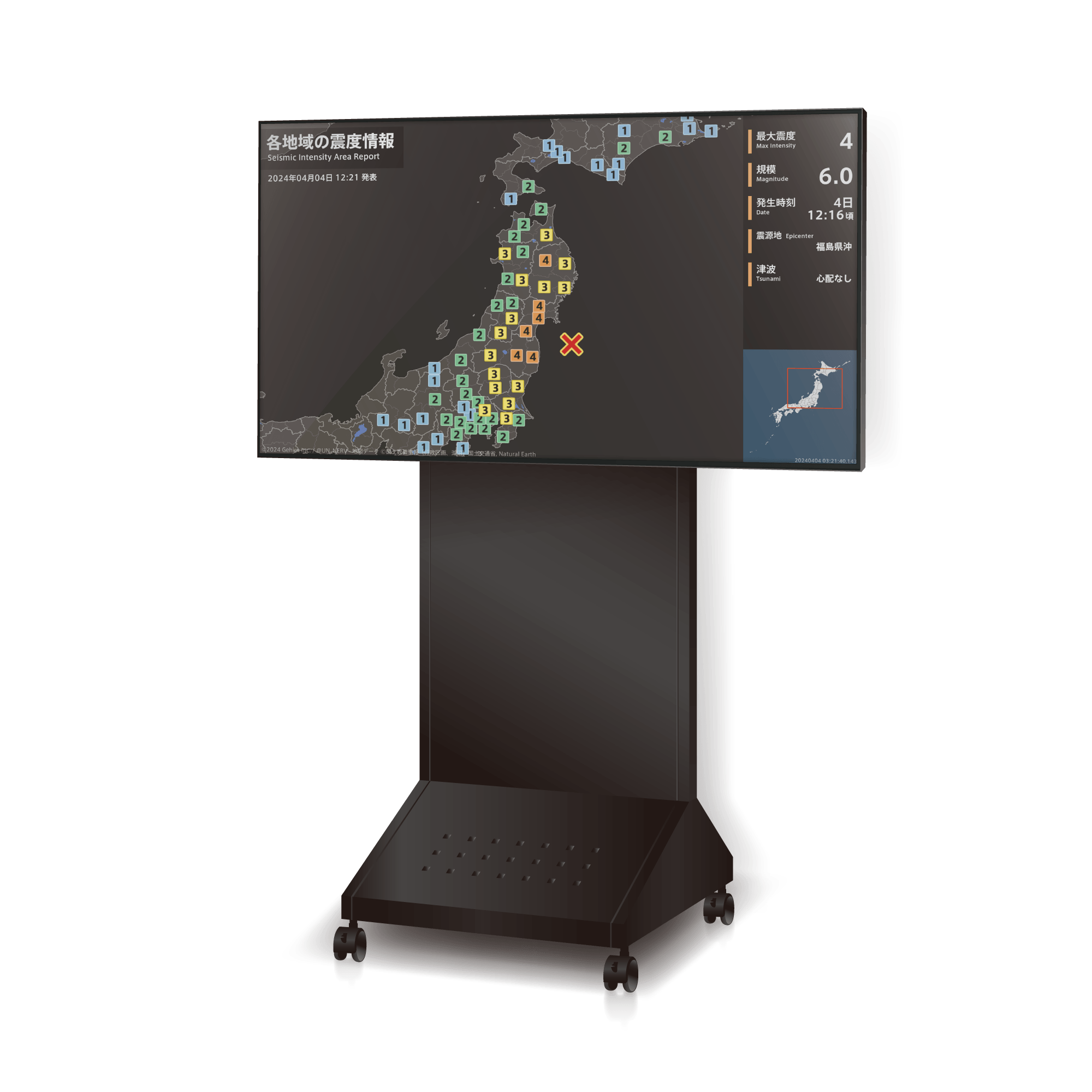平常時は防災・減災の啓発コンテンツ等を放映し、災害発生時には自動的に災害情報コンテンツへ放映を切り替えることのできるサイネージソリューションです。現場社員の負担を大幅に軽減しつつ、お客さまへ次の行動を促す有益な情報提供をINFONEXが実現します。