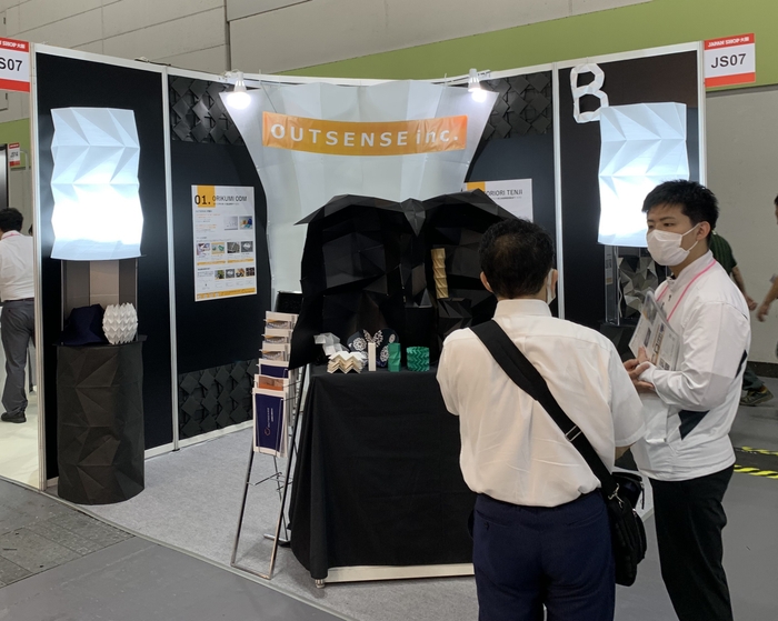 株式会社OUTSENSE(東京都大田区)は、7月20日㈭~21日㈮インテックス大阪にて開催の「JAPAN SHOP大阪2023」にて日本の伝統技術である『折り紙』の文化を工学分野に応用した『折り工学』に関する設計・材料・製造のノウハウを活かして、展示会や商業施設等の装飾品の製造を行うサービス【ORIKUMI ODM】と、展示会やイベントにおける立体装飾壁面製造サービスの【SORIORI TENJI】を展示いたしました。