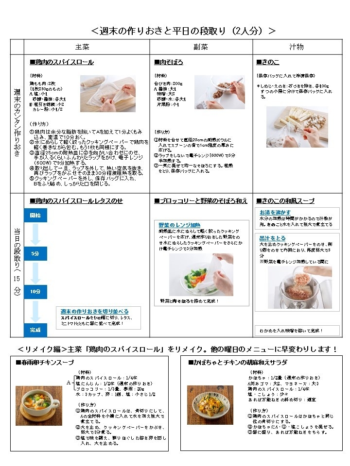 - 平日15分のために、「週末60分」でカンタン作りおき