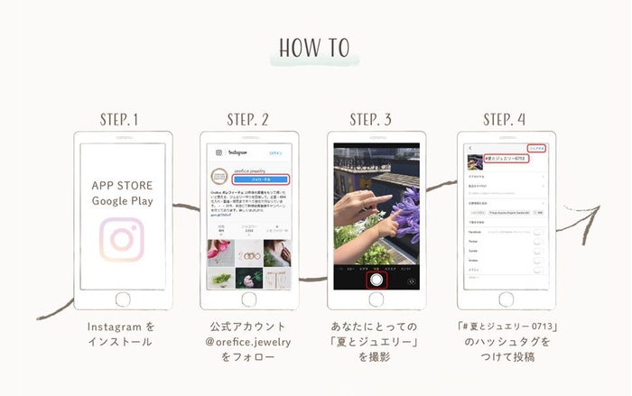 (4) 「#夏とジュエリー0713」のハッシュタグを着けて投稿