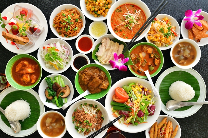 アジアの料理がテーブルを埋め尽くすシンガポールのローカルフード“ナシパダン”
