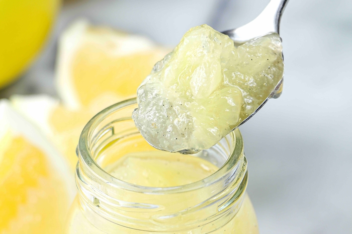 宮崎県の代表的な果物の1つのジューシーな日向夏ジュレをたっぷり入れました。