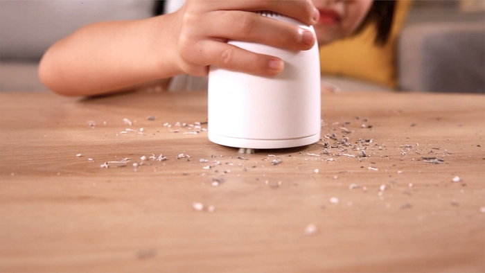 でも気軽に簡単にお掃除ができるハンディクリーナーがあれば気がついた時に、卓上をきれいにすることができます。