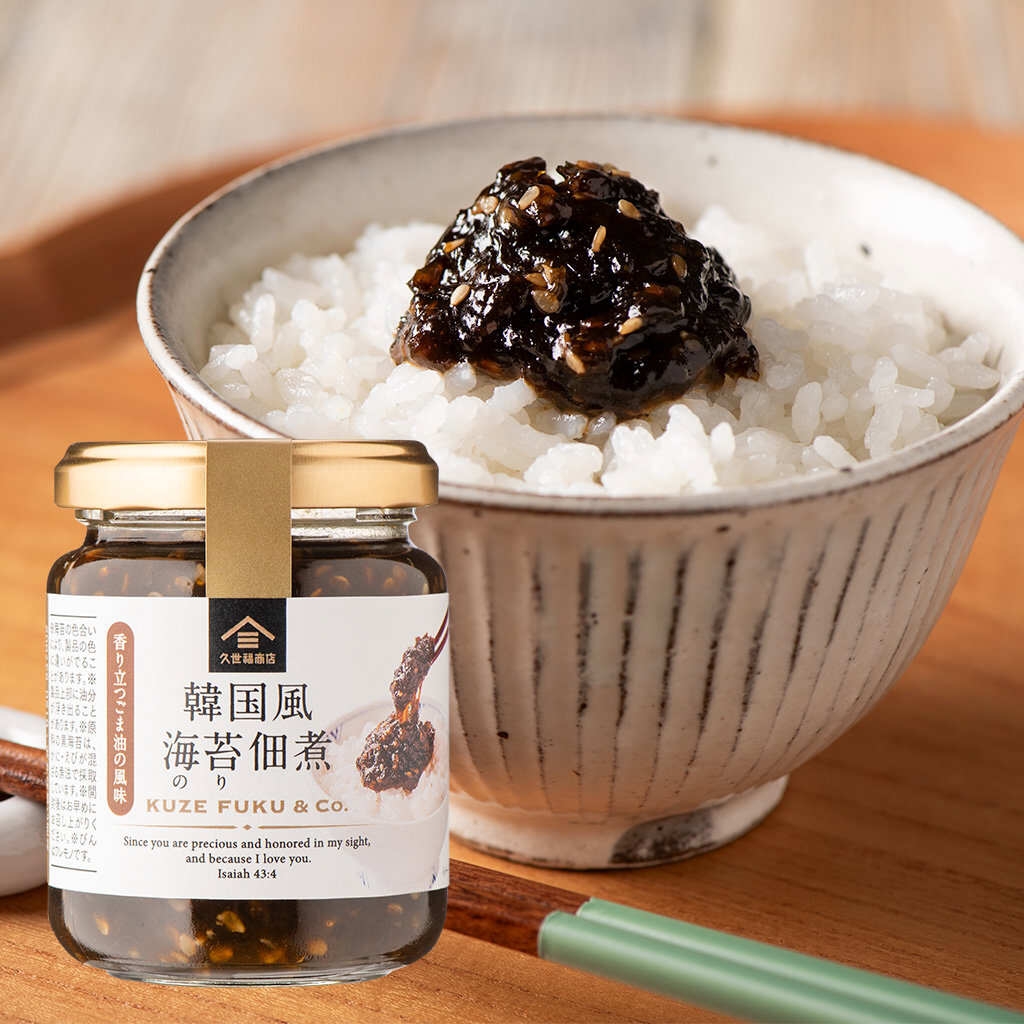 濃厚で甘辛い味付けがクセになる、新作アイテム「韓国風 海苔佃煮」!いつもの卵スープに「韓国風海苔佃煮」を溶かすだけで本格的な韓国風スープの味わいに。海苔の豊かな食感と風味、ごま油の香りが食欲をそそる絶品スープを、ぜひお楽しみください。