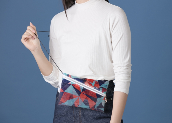 「サコッシュバッグ カラーモデル」は、様々な素材や色が混在するカラー傘を、より細かな選別を行う事により実現した製品です。ビニール傘を粉砕などはせずに再利用する事により、汚れても水拭きが出来るメンテナンスのし易さはもちろん、雨の多くなるこれからの時期にも安心してお使いいただけるサコッシュバッグです。様々な柄を持つカラー傘を何層にも重ねてプレスをする事により、同じものは2つと無いオリジナリティの高い製品が完成しました。華やかなカラーによりユーザーの趣向に沿った提案が出来る製品として、6月9日よりオンラインストアで販売を開始し順次ラインナップの拡充を行います。