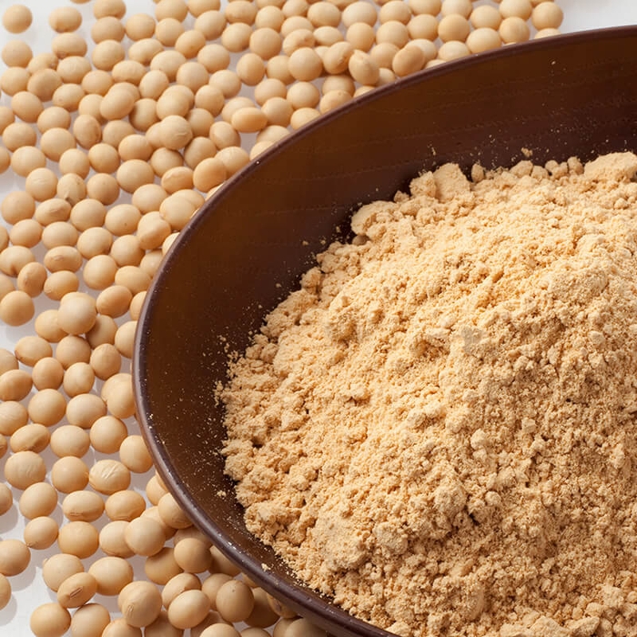 きなこ原料である大豆は「畑の肉」と言われるように日本古来のタンパク源であり、世界的にもヘルシーフードとして注目されています。大豆は豆類の中でも最もタンパク質の含有量が多く、体内で合成できない必須アミノ酸をバランス良く含んでいます。しかもきなこは粉状になっているため、そのまま大豆の状態で食べるよりも消化吸収が良いです。タンパク質のほか、イソフラボン、レシチン、サポニン、ビタミンB群、ビタミンE、カルシウム、カリウム、鉄、食物繊維などを多く含んでいます。