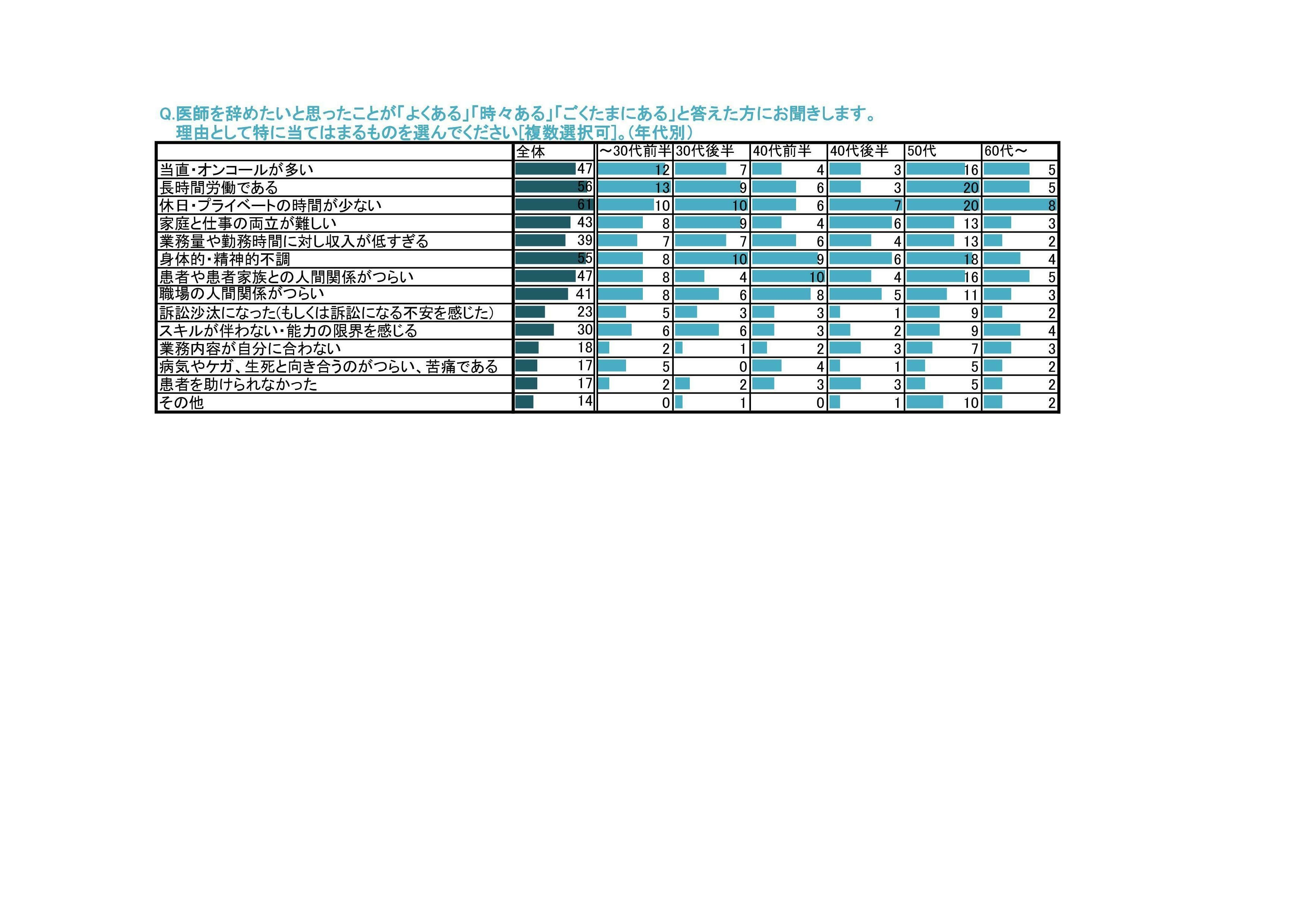 ・患者の体調の具合を気にする前に、医師である自分の体調に気を付けなければいけないくらい、忙しく働いているという現状が問題(30代男性)