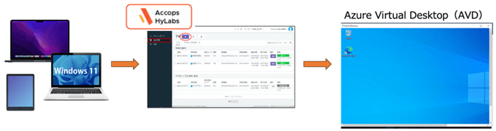 インターネット環境があれば、自身のPCからいつでもどこからでも接続可能なデスクトップ仮想化(VDI)サービスのAVD環境と、自習室の予約などを管理する仮想デスクトップソリューション(Accops HyLabs)を組み合わせて提供します。これにより、これまでは通学の必要があったPC教室での授業や自主学習も、場所を問わず実施することができます。また、教員も共通のソフトウェアがインストールされた環境で授業を実施することができます。