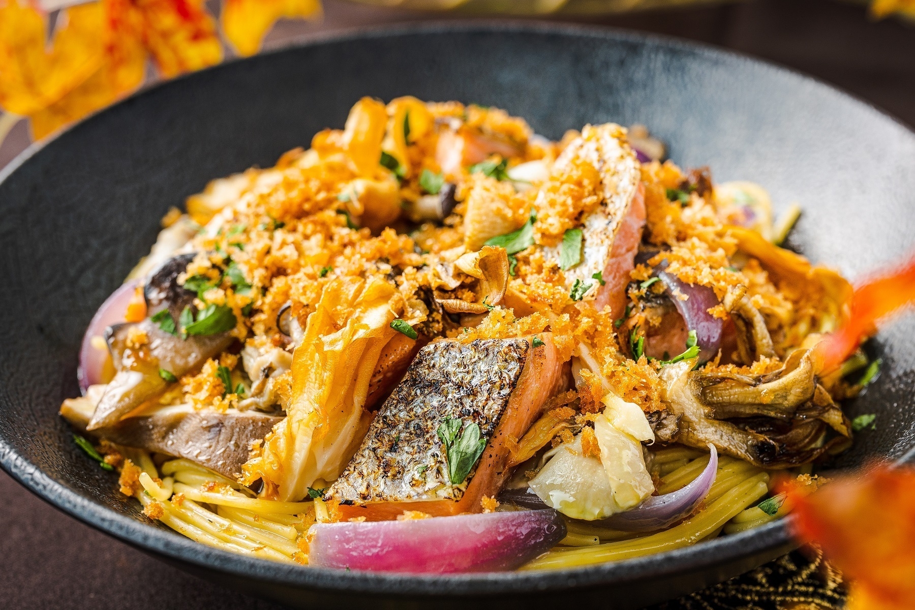 自慢のイタリアンに香り高いトリュフなどをふんだんに合わせ、ご用意したおすすめ料理は絶品ばかり。「秋鮭と茸スパゲッティ 香草唐墨パン粉をかけて」や「香り高い松茸香るピッツァ すだちの香り」など、味はもちろん、香りも存分にお愉しみいただける料理の数々をご用意いたしました。