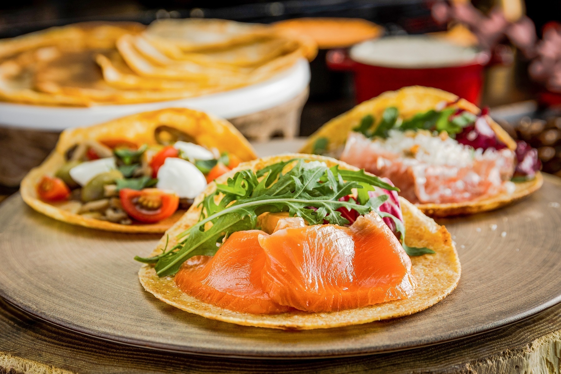 ホロホロとほどける食感に仕上げた「胡椒を効かせた牛肉と根菜の赤ワイン煮込み“ペポーゾ”」やお好きな具材を取り、自身で巻いて食べるのが楽しい「オリジナル クレスペッレ」など、取って楽しい、食べて美味しい、XEX TOKYOのブッフェをお愉しみください。