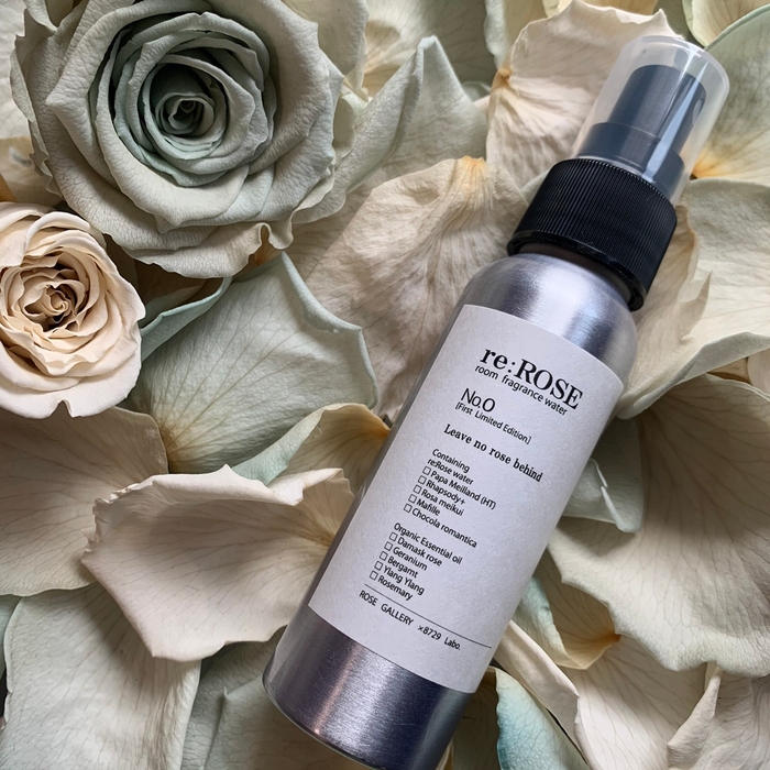 ルームフレグランス 『re:ROSE No.0』は、コロナの影響で出荷制限がかかったり、市場出荷規格に満たないなどの理由でやむなく廃棄されてしまうバラが多く存在しているという現状を解決するため企画されました。ローズギャラリーの契約農家にて特別栽培されている香り高いバラを全て買い取り、花染花馥研究所の協力を得て、真空低温減圧蒸留法にてそのいのちのエッセンスを一滴一滴余すことなく抽出した濃厚で芳醇な香りのローズウォーターを5品種、一本につき約500輪分のバラの香りをたっぷりとふんだんに配合した数量限定スペシャルエディション。ダマスクローズオイルを始め全てオーガニックの精油を用いて、MAGNOLIA 笹本英恵さんの調香により調合された上質な香りとともに、ローズギャラリーを愛する華やかで美しくかつ知的で凛とした意思のある女性をイメージし、バラのいのちのエネルギーとその喜びの詰まった香りを纏うことのできるアイテムとなっています。