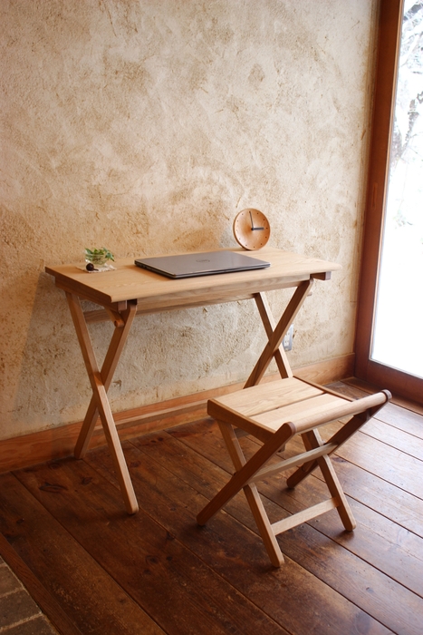 オークヴィレッジ株式会社(岐阜県高山市牧ヶ洞、代表取締役社長:上野 英二)は、金具を一切使わず木組みの伝統工法でできた、折りたたみ式の家具「折りたたみデスク」と「折りたたみスツール」を開発しました。