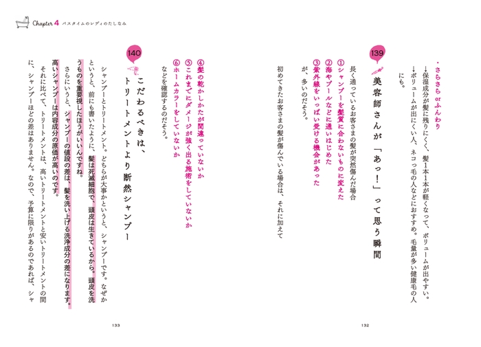 寝グセは根元から一度濡らす/女は分け目から老ける/ひし形が圧倒的に美人/後頭部を盛ると若く見える/ワックスは混ぜても使える etc.