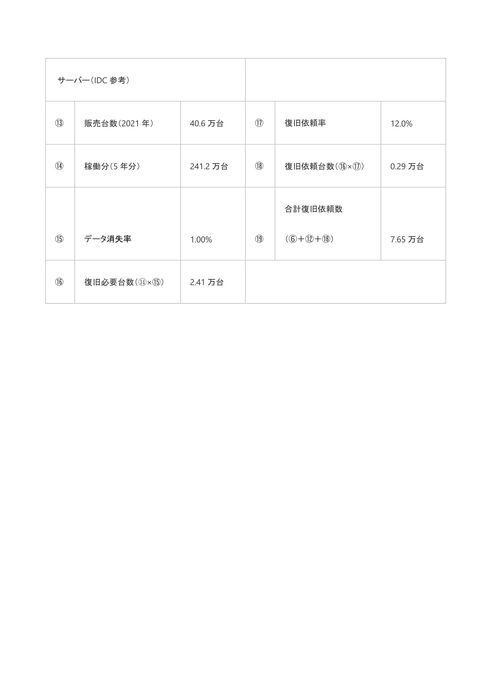 ※4 (15)については、サーバーの原価償却期間を5年として稼働期間を定義、その間に各HDD個体の障害に遭遇する確率が全体で30%ほどに達するとして、冗長化継続対応を怠ったためにデータを消失するユーザーが1%と想定。