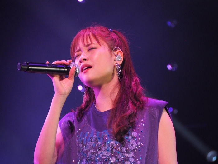初日、16時45分開演の1公演目は「L version」。“BOAT RACE 2021”のTVCMイメージソングの「STARTLINE」をはじめ、緑黄色社会の長屋晴子が書き下ろした「透ケルトン」、一青窈が作詞を手がけた「#やっぱもっと」などを収録した最新アルバム『l(エル)』。コロナ禍の中、価値観や生活が大きく変化したことで、“life”“live”“love”について考え、生まれた作品となった。この公演の衣装は、アルバム『l』のコンセプトカラーである紫を取り入れたものになっている。