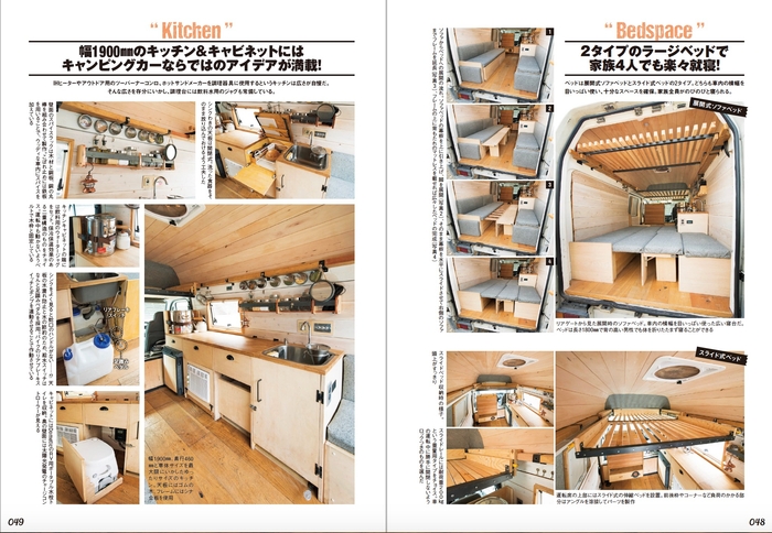 ベース車もさまざまなので、ずらりと並ぶ手作りキャンピングカーの中に、読者はイメージする車中泊空間や真似したくなるアイデアをいろいろと見つけられるに違いありません。