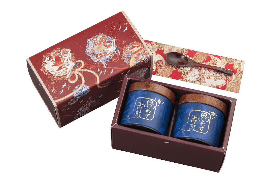 チョコレート業界で実績のある加藤彩氏によるデザインは当社社是「鰹節で世界を彩る」に相応しく、和風の文様・花・ツルなどをあしらい、「世界へはばたく」想いを込めた幻想的な趣で好評をいただいております。
