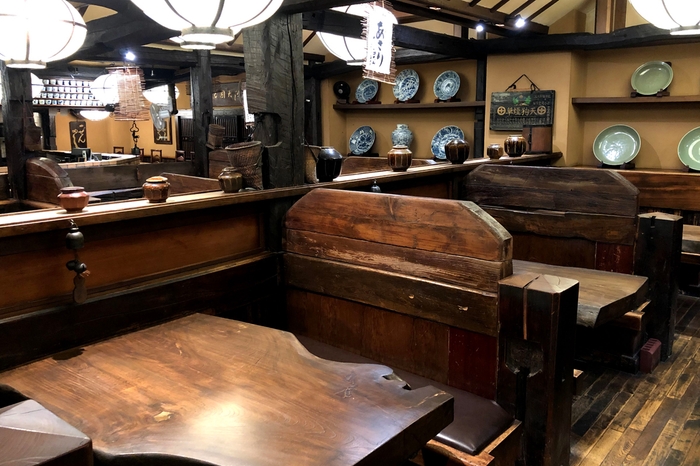 休業の間に内装を一部改装しました。古くなっていたテーブルを全て削り、磨き、塗装をし直しました。以前より濃い色の仕上げにしたので、落ち着いた雰囲気になりました。
