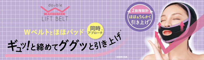 「Wリフトベルト」は、顔のたるみを解消するために特別に設計されました。その特徴は、2段階設計のフェイスベルトが頬と輪郭をそれぞれ引き上げることで、引き上げの力を高めている点です。内側についたパッドは、頬をしっかりと支えて持ち上げてくれるので、顔のたるみを持ち上げるサポートをしてくれます。