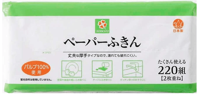 新型コロナウイルス感染症拡大による衛生意識の高まりから、ペーパーふきんの需要が高まっています。「スマイルライフ ペーパーふきん」はパルプ100%使用の日本製で、濡れても破れにくくしっかり拭くことができます。キッチン周りのおそうじ、食器の軽い拭き取り、テーブルの拭き取り、手洗い後のお手拭きなど、ご家庭のさまざまなシーンでお使いいただけます。ちょっとした汚れをサッと手軽に拭くのに便利な「スマイルライフ ペーパーふきん」はライフ276店舗にて販売しております。
