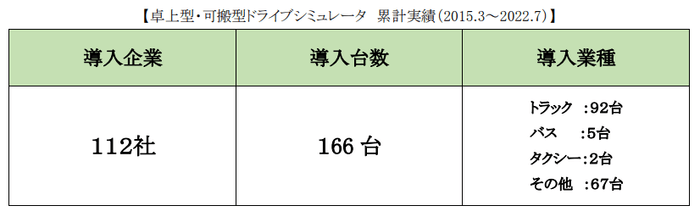 企業向け卓上型ドライブシミュレータの販売実績(2015年3月~2022年7月)