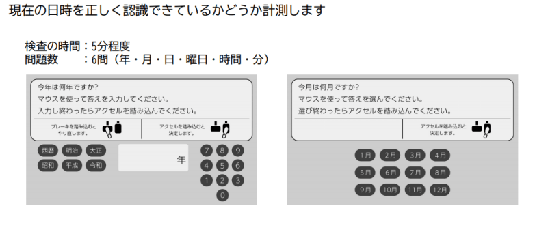 シミュレーション走行中に見ていた映像(対向車の色や、標識の内容等)について短期記憶力の計測を行います。
