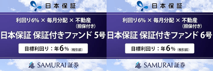 個人投資家にさまざまな投資機会を提供するための、新たな資産運用プラットフォーム「SAMURAI FUND」を運営するSAMURAI 証券株式会社(本社:東京都港区、代表取締役:中山 幹之、以下:「当社」といいます)は、本日、株式会社日本保証とのタイアップによる新商品、『【利回り6% × 毎月分配× 不動産担保】日本保証 保証付きファンド5号・6号』(以下:「本ファンド」といいます)を公開いたしました。