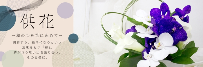 そこでフラワーショップPHOENIXでは、お花もお仏壇の変化と合わせて新しいお供え花のあり方として、リビングで飾ってもおしゃれでモダンなインテリアとして映えるお供え花を『和の心を花に込めて』をテーマに作成・販売致しました。